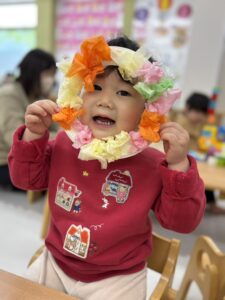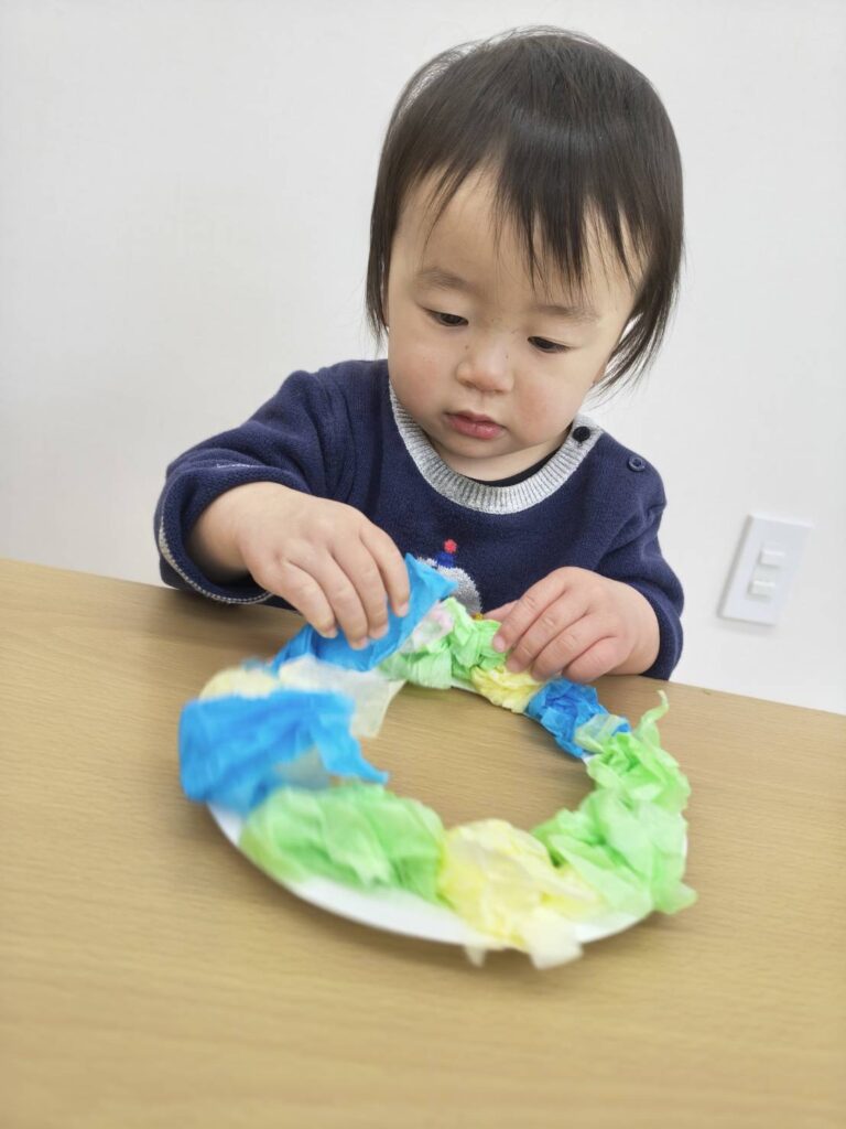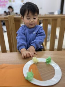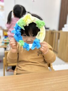 きれいな色のお花紙の中から自分たちで